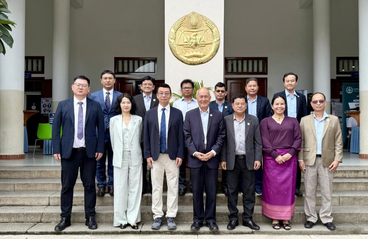陸丹博士一行與柬埔寨副首相兼教育、青年和體育部大臣特別助理黃子揚先生,柬埔寨國立管理大學(xué)校長Dr. Hor Peng一行合影留念