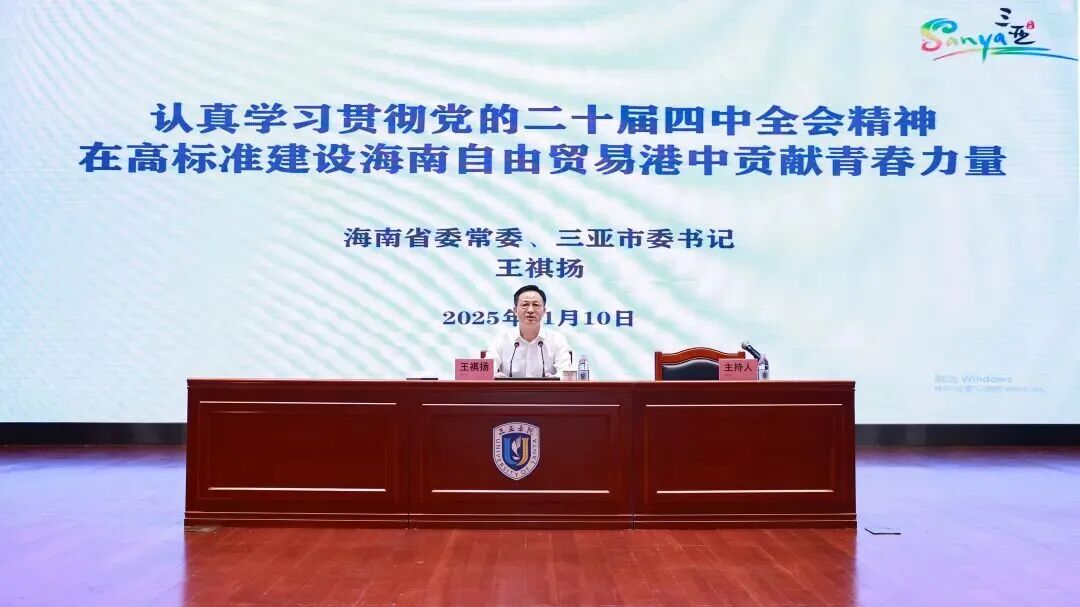 11月10日,省委常委、市委書記王祺揚以“認真學習貫徹黨的二十屆四中全會精神,在高標準建設海南自由貿易港中貢獻青春力量”為題,在三亞學院宣講黨的二十屆四中全會精神并講授思政課。
