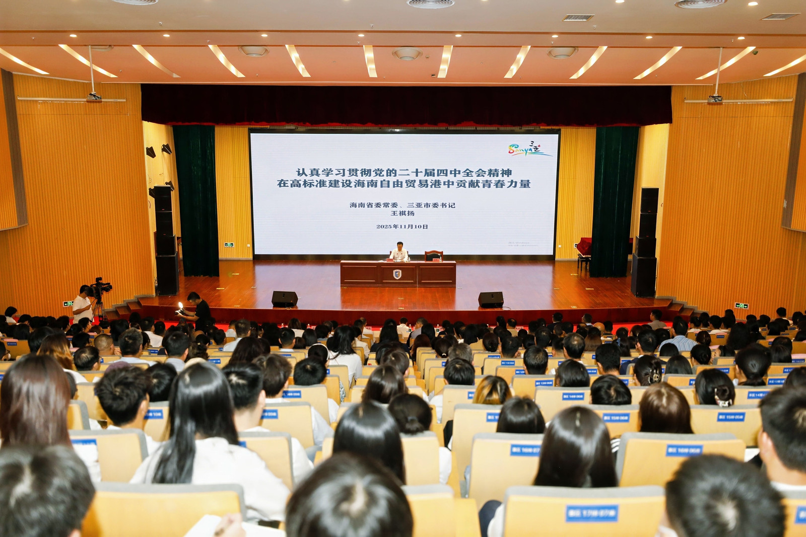 11月10日,省委常委、市委書記王祺揚以“認真學(xué)習(xí)貫徹黨的二十屆四中全會精神,在高標準建設(shè)海南自由貿(mào)易港中貢獻青春力量”為題,在三亞學(xué)院宣講黨的二十屆四中全會精神并講授思政課。三亞學(xué)院校長沈建勇主持宣講會。