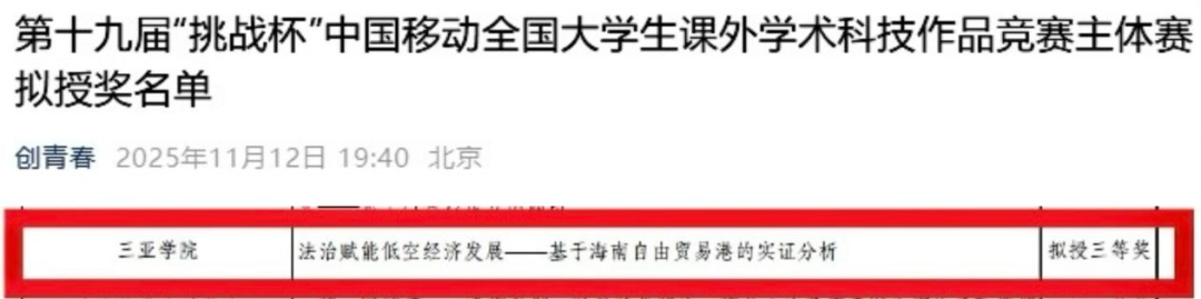 經(jīng)過激烈角逐,三亞學(xué)院法學(xué)院(自貿(mào)港國際法學(xué)院)學(xué)生團(tuán)隊(duì)申報(bào)的參賽項(xiàng)目《法治賦能低空經(jīng)濟(jì)發(fā)展—基于海南自由貿(mào)易港的實(shí)證分析》榮獲全國主體賽三等獎(jiǎng),實(shí)現(xiàn)學(xué)校在該賽事哲學(xué)社會(huì)科學(xué)類賽道上的全新突破!