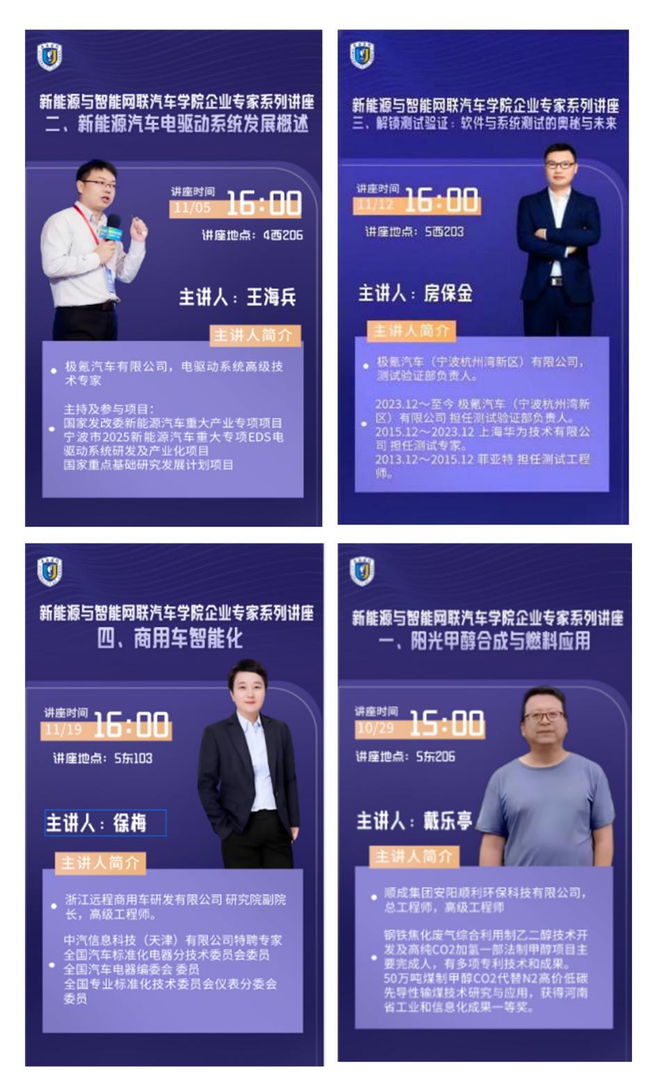吉利汽車集團前質(zhì)量總工程師徐抗在“讓更多的學(xué)生走進吉利”講座中,以生動案例闡釋汽車質(zhì)量作為“生命線”的價值,激發(fā)學(xué)生的職業(yè)認(rèn)同與行業(yè)自信。陽光氫能首席工程師戴樂亭通過云端課堂展示“綠氫—甲醇”技術(shù)鏈,與學(xué)生實時互動,探討零碳燃料在“雙碳”背景下的應(yīng)用前景。王海兵博士則圍繞電驅(qū)動系統(tǒng)集成技術(shù),拆解“電機—電控—減速器”三位一體方案,幫助學(xué)生構(gòu)建專業(yè)知識框架。