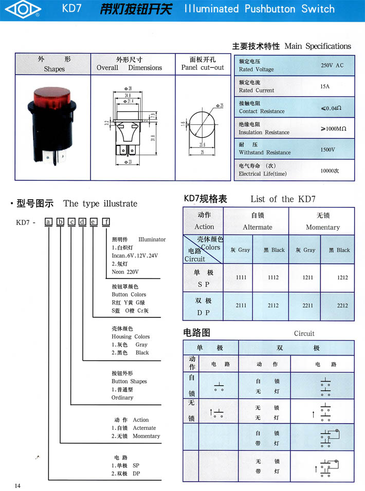 產(chǎn)品型號(hào):KD7系列帶燈按鈕開(kāi)關(guān)