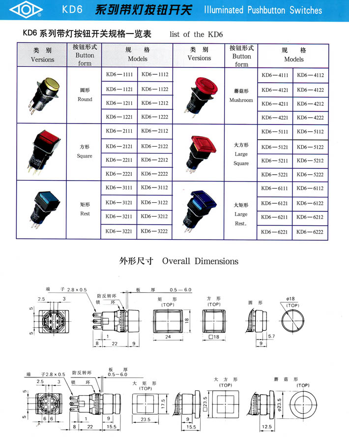 產(chǎn)品型號(hào):KD6系列帶燈按鈕開關(guān)