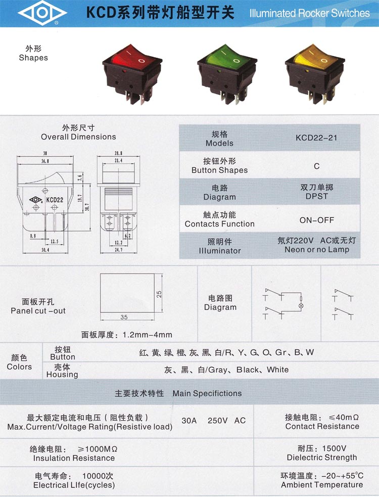 產(chǎn)品型號(hào):KCD22帶燈船型開(kāi)關(guān)